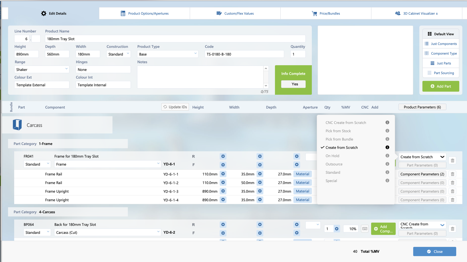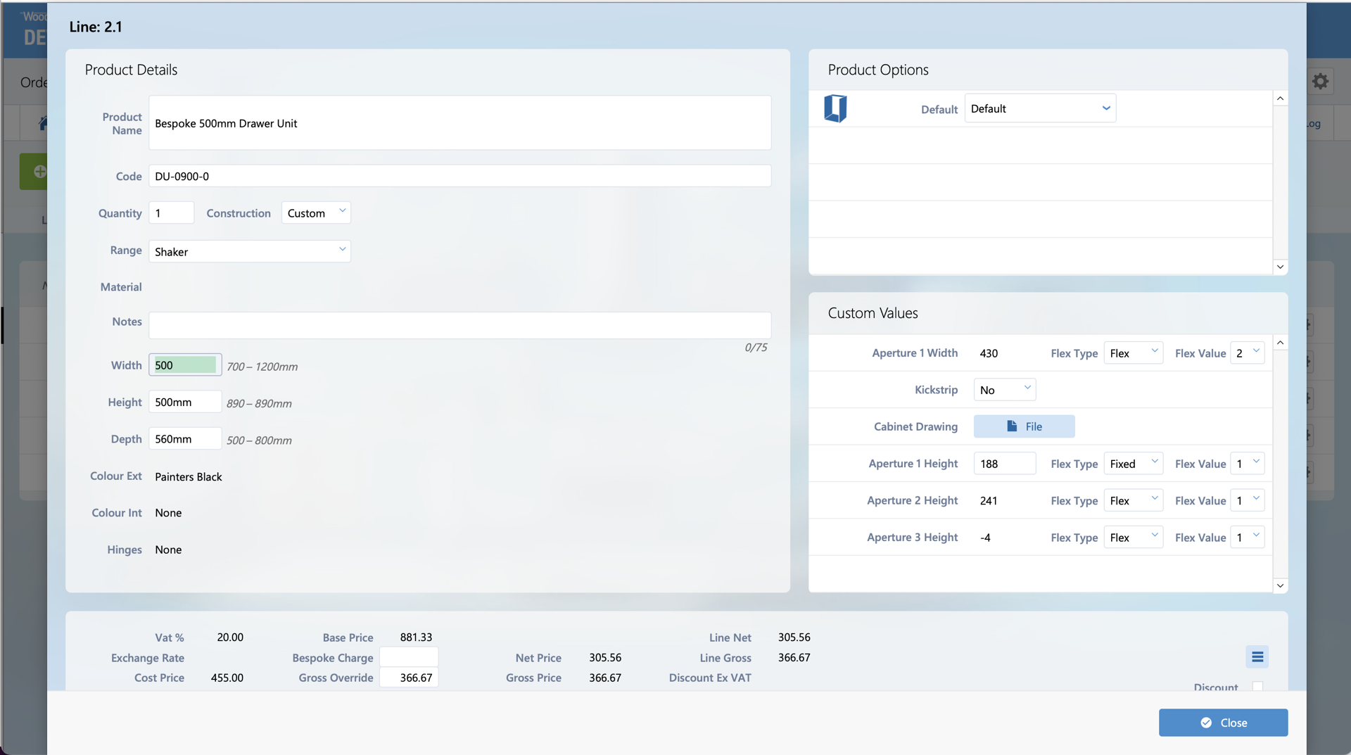Any dimension changes made from the Lin Item window now correctly follow the same behaviour as changes made form the Edit Card Window. If any part Sourcing change are required these are now made immediately as part of the same transaction to ensure the correct part sourcing is applied if Part Construction is changed.