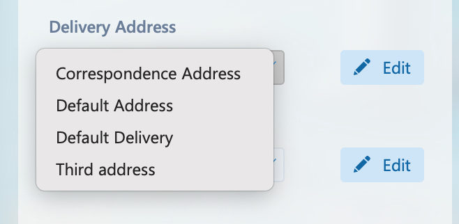 If the details of the address need modifying or a new address added you can click the ‘Edit’ button to open the above window. From this window the required changes can be made and the correct address selected.