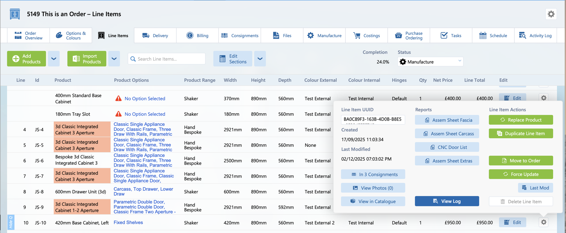 The changes made to a line item can be viewed by clicking the cog button on the far right of the line item, and clicking the ‘View Log’ button.