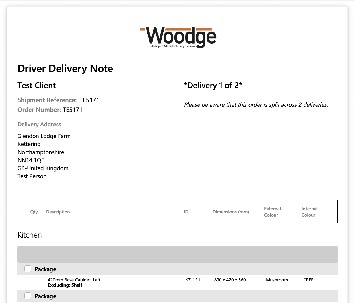 Example Driver Delivery report.