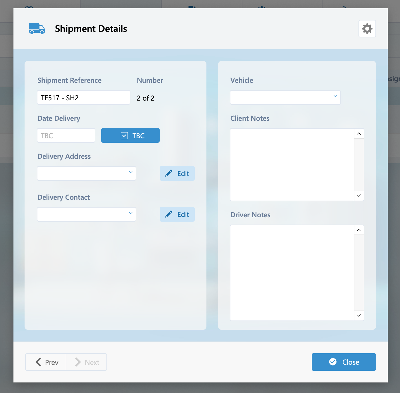 Each shipment can have different delivery date, address, contact, vehicle allocation, client and driver notes.