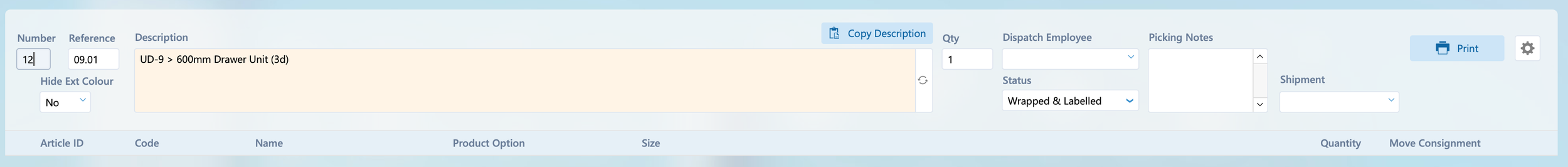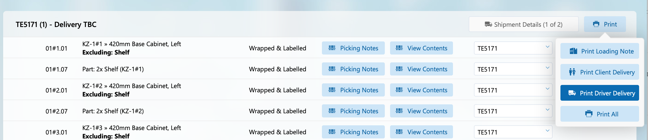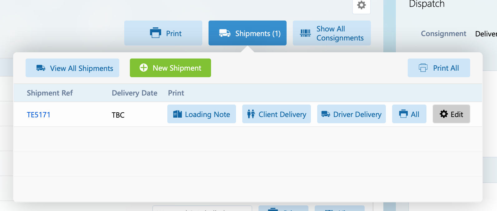 It’s possible to print an individual piece of delivery paperwork or all documents in one go from the print popover. These print options are also available from the Shipments popover on the Consignments layout.