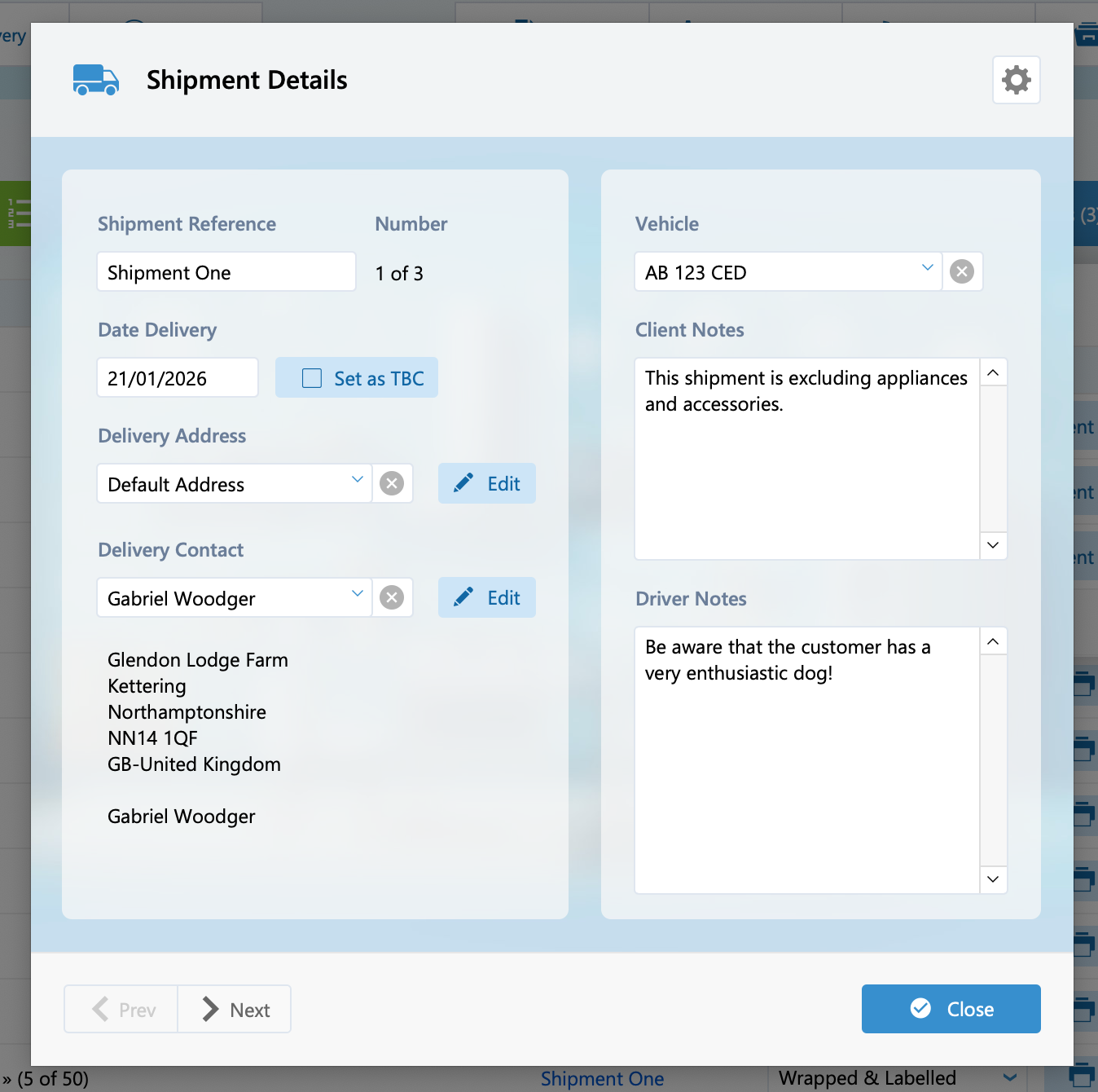 The first shipment created will default to the delivery date set on the order, additional shipments will default to a ‘TBC’ shipment date that will need to be manually specified.